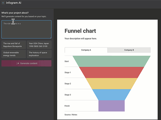 Now with an AI chart generator, you can create interactive, visually captivating charts in a fraction of the time it would take to do manually. All you need to do is paste your data or type in a topic, and the AI instantly generates a fully customized chart for you.